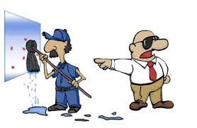 O zelador imediatamente pegou um pano, molhou no vaso sanitário e passou no espelho.